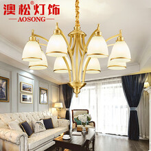 澳松 美式全铜吊 灯欧式大气客厅灯 个性艺术餐厅灯 灯罩朝下卧室别墅会所全铜灯具 6头灯罩朝下适合10-15平方