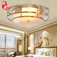 臻藏 新中式全铜吸顶灯客厅灯具led圆形大气卧室灯中国风书房纯铜灯饰 直径80*高度20cm
