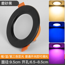 家装照明筒子灯 筒灯led铜灯嵌入式开孔灯8cm天花七彩客厅射灯7.5筒子灯吊顶彩灯 平面2.5寸沙黑5w暖+蓝+紫