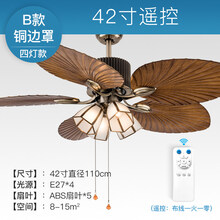 LIGHTMATES 复古风扇灯餐厅吊扇灯客厅家用一体风扇吊灯美式工业带灯电扇 四灯+铜灯罩+42寸+遥控