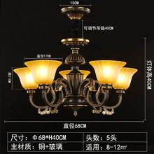 奥灯欧式全铜吊灯客厅灯大气卧室简单餐厅黑擦金6头复古吊灯H077 5头黑擦金铜灯雪花南瓜罩