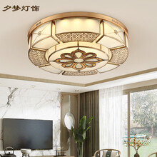 夕梦 新中式全铜吸顶灯中国风客厅灯仿古圆形餐厅灯具复古卧室古典铜灯 GT213-直径45*高15cm(圆形) 三色调光