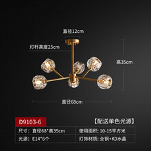品盟 后现代轻奢客厅吊灯水晶卧室灯餐厅全铜灯具简约北欧分子网红灯饰 6头全铜材质-水晶灯罩/简约款