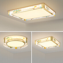 夕梦 珐琅彩新中式全铜吸顶灯轻奢中国风客厅灯具禅意餐厅卧室铜灯套餐 【荷花】长方形-直径90*70cm*高度8cm 三色调光