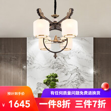 富戈 朝下新中式吊灯全铜客厅灯禅意山水现代中国风餐厅灯别墅纯铜灯具 4头/全铜吊灯【暖光led-32W】