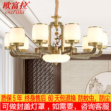 欧富 新中式全铜吊灯珐琅彩轻奢大气客厅铜灯中国风别墅复式楼餐厅卧室样板间防蚊加盖灯具 10头 适合20-25平方