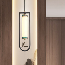 富戈 新中式单头云石小吊灯禅意餐厅餐吊吧台过道玄关灯饰现代全铜灯具 全铜+天然云石/竹叶款/60厘米高/配暖光LED