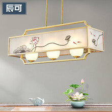 辰可 全铜新中式餐厅吊灯珐琅彩三头饭厅灯现代简约禅意茶室灯具 珐琅彩绘画+全铜灯体-3头