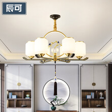 辰可 新中式吊灯全铜客厅灯现代简约卧室餐厅书房中国风别墅灯具 全铜灯体+防尘罩-朝上款6头
