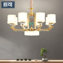 辰可 全铜新中式大吊灯珐琅彩客厅灯别墅复式楼中空楼中楼工程灯具 全铜灯体+珐琅彩小鹿-防尘罩6头