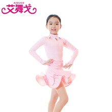 艾舞戈儿童拉丁舞演出服春季女童立领鱼骨拉丁裙双层裙摆表演考级专业练功服 粉色 170码 (身高165-170cm)