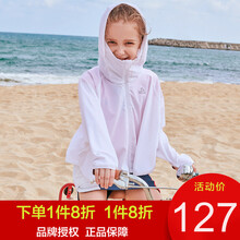 伯希和防晒衣服儿童女披肩皮肤风衣斗篷夏季 配裙子吊带外搭式围巾蝙蝠衫防紫外线UPF40+快速干户外 极地白 130-140cm