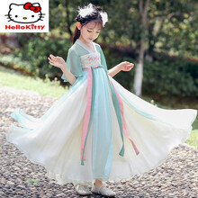 国货之光2021新款女童汉服夏装风儿童古装超仙唐装襦裙女孩连衣裙夏季国潮 浅绿色 160
