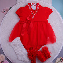 满月服女宝百天百日宴拍照衣服新生儿周岁服女宝宝满月服夏季婴儿汉服爬爬服薄礼服100天连衣裙 裙+鞋+发带+网眼防蚊袜 90cm