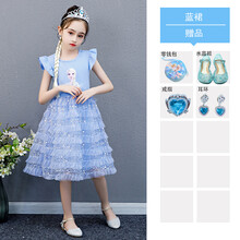 冰雪奇缘艾莎公主裙夏款爱莎连衣裙子儿童爱沙的衣服女夏季礼服 蓝裙 100(留言鞋码送鞋子)
