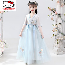 国货之光汉服女童夏季古装风2021新款儿童装古风唐装襦裙超仙女孩夏装国潮 蓝色 160