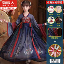 2021南极人正品牌童装5-9岁14特价女童汉服春秋款广袖仙公主齐胸襦裙小女孩古装中国风古筝演出服 零落蓝色款送鞋子 120