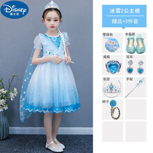 迪士尼品牌高端新品 夏季爱莎2公主裙冰雪奇缘艾莎女童短袖连衣裙子Elsa六一新款礼服 爱莎短袖含披纱+赠品+配饰3组合装 140码(留言鞋码送鞋子)