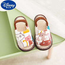 迪士尼 Disney手工纳底男女童儿童宝宝拖鞋室内春秋婴儿一岁半亚麻防滑布家居鞋新品 小猫露趾 19码内长17cm脚长16cm(适合3-4岁)