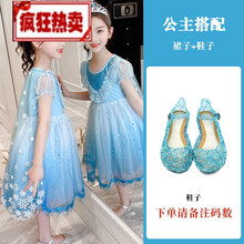 界方【新品】1-14岁6岁洋气小孩夏天穿的爱莎公主裙女冰雪奇缘儿童裙子夏季女童夏装连衣裙艾莎礼服夏 8810【送披风+魔法棒+皇冠+鞋子】 110cm(110cm【...