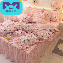迪士尼同款新品秋冬ins公主风全棉纯棉床裙四件套夹棉款加厚双人床罩式床上用品 幽香花语-粉 1.5夹棉床裙(被套200x230)4件