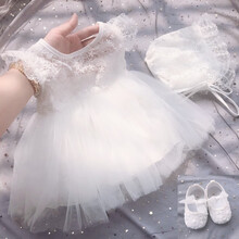 婴儿连衣裙公主裙夏季女宝宝周岁裙满月2百天礼服百日宴1岁薄秋款 超仙公主裙+帽+鞋 送发带 3m59cm约0-2月8-11斤