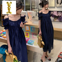 珂纷【甄选精品】孕妇夏装连衣裙夏季上衣网红时尚款高级孕妇装夏套装夏天露肩裙子 藏青色 M