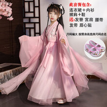儿童汉服儿童汉服女童古装仙女飘逸12岁女孩秋装超仙襦裙中国风古筝连衣裙 香蜜(全套) (送绣花鞋) 110