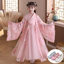 儿童汉服汉服女童春秋古装超仙襦裙儿童连衣裙2021夏装公主齐腰粉色中国风 公主粉全套+送鞋(请备注鞋码鞋色送九) 110