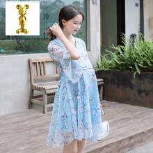 珂纷【甄选精品】洋气孕妇装夏装时尚外出2021潮辣妈个性裙子网红夏季小清新连衣裙 蓝色 M