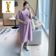 珂纷【甄选精品】孕妇夏装大码T恤中长款夏季时尚印花过膝宽松孕妇连衣裙夏天裙子 紫色 M