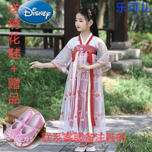 迪士尼小孩子的夏装汉服女童儿童古装连衣裙超仙夏季樱花公主飘逸中国风仙女襦裙 红色送绣花鞋+ 110适合身高105-110