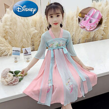 迪士尼小孩子的古风女童汉服春秋儿童古装超仙中国风襦裙仙女服飘逸小女孩连衣裙 粉色玉兔 送发簪 眉心贴 鞋子 100
