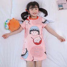 踏舰新品3-14岁小孩儿童睡裙短袖棉质夏季薄款女童睡衣宝宝小女孩中大童卡通女连衣裙旗舰童装 短袖裙 (小丸子) 8码参考身高90-100【30斤