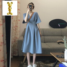 珂纷【甄选精品】孕妇夏装裙子2021春新款短袖孕妇连衣裙夏季欧美风夏天高级孕妇装 蓝色 M