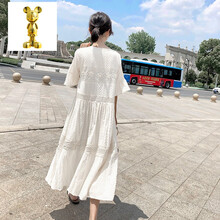 珂纷【甄选精品】高级孕妇夏装连衣裙夏季新款外出时尚款小清新长裙温柔风夏天裙子 白色 S