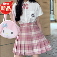 儿童jk制服裙套装全套女童水手服中小学生正版原创10春装夏装12岁 树莓红茶裙+刺绣短衬衣+领结 送飞机盒 S建议75-90斤