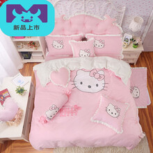 迪士尼同款disney折扣店新品网红款床裙公主风全棉纯棉四件套少女心可爱卡通被套床上用品 可爱猫-粉 床单款1.2*2.0床(被套150*200)四件套