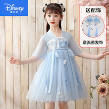 迪士尼(Disney) 古风时尚女童连衣裙夏装2021新款儿童装裙子夏季薄款小女孩洋气公主裙汉服 956蓝色短款 【加发饰】 160cm
