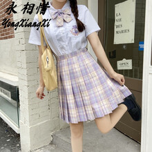 jk套装清纯初中学生 夏季全套儿童格子裙少女学院风基础款上衣日系水手服 黛雨(衬衣+裙子+·领结)短袖 XS 50-70斤