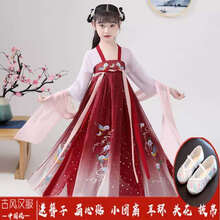 女童汉服超仙飘逸襦裙儿童古装连衣裙女孩古风儿童唐装中国风夏装礼服演出服 深红色 红嫣襦裙 +鞋子 130