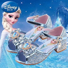 迪士尼爱莎公主鞋女童凉鞋冰雪奇缘艾莎公主鞋子夏季新款洋气儿童走秀表演高跟鞋小女孩水晶鞋 蓝色 25