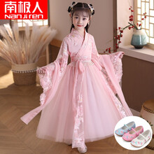 南极人官方旗舰特价清仓捡漏汉服女童春秋古装超仙襦裙儿童连衣裙2021夏装公主齐腰粉色中国风2021 公主粉-连衣裙+送鞋(请备注鞋码鞋色,买一送九) ...