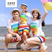裃迪芙特 沙滩亲子装2021新款潮夏装一三口四口母女裙母子装海边休闲度假 拖鞋t恤+彩虹裤(套装) 妈妈L(105~115斤)