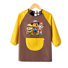 界方ℂℂ℘小孩子穿的百变潮搭酷儿童长袖围裙女防水防油中大童吃饭罩衣画画反穿衣定制幼儿园 汪汪队【咖色】黄兜 防水 L码【建议100-130cm】