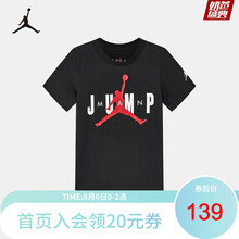 Nike Air Jordan 耐克童装男童纯棉短袖T恤夏季儿童休闲针织短T上衣73-160 正黑色 150(M)