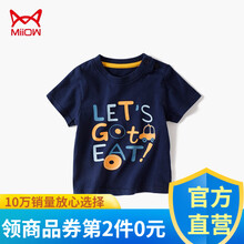 Miiow 猫人儿童t恤女童半袖韩版夏季棉童装男童短袖夏装小宝宝上衣 黄色小汽车-深蓝 140