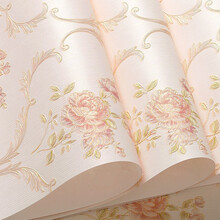 欧式田园婚房墙纸卧室壁纸无纺布温馨背景客厅壁纸3D立体浮雕壁纸 淡粉色 302(净味凹凸加厚版)【买前必看】墙纸一件长9.5米,宽度0.53米,每件5平方。背面无胶.非自粘墙纸,需另购胶水粘贴。胶水链接