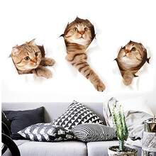吉朵芸 3D立体视觉可爱小猫贴画卧室床头墙贴寝室宿舍随心帖衣柜冰箱贴装饰贴纸可移除墙纸墙纸壁画 褴褛猫3只平面墙贴,猫咪随心帖,俏皮可爱,每个图案可单独黏贴