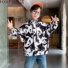 【特价捡漏】HXKP儿童秋装2021新款中大童冲锋衣外套男童熊猫宽松连帽夹克潮酷童装迪卡黑侬 黑色 110cm